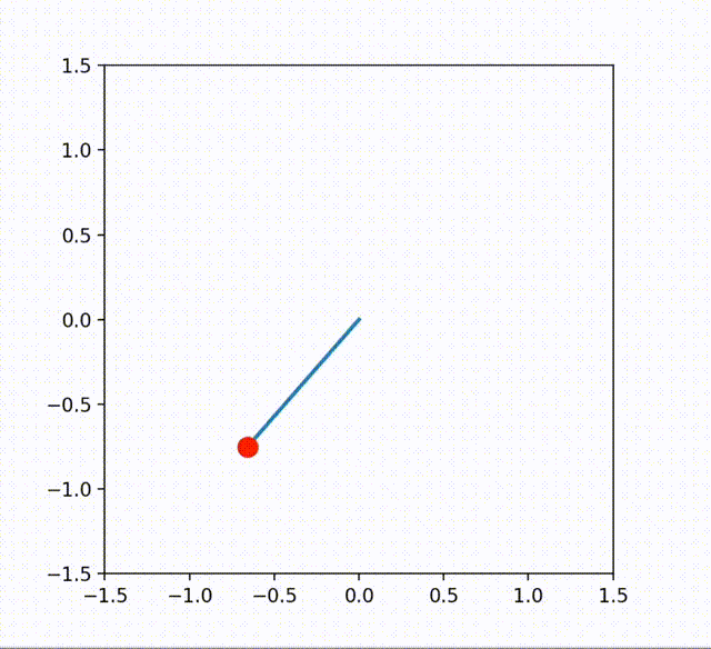 theta = pendulum_motion(t[frame], theta_0, L, g)
