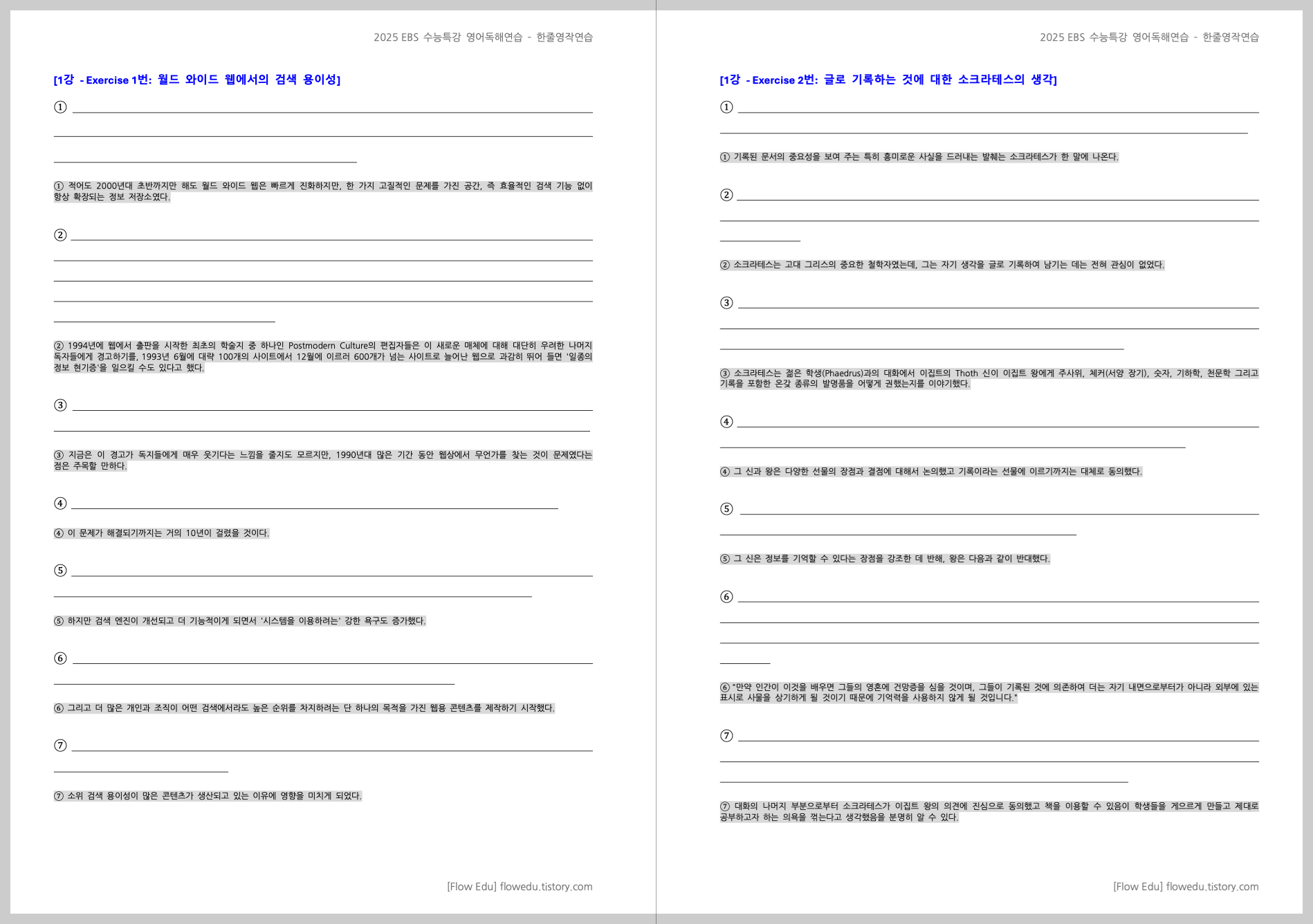 [무료 PDF & Word] 2025 EBS 수능특강 영어독해 (전체 범위) - 제목/요지/요약/글흐름 by ChatGPT 4.0 요약자료 올립니다. 전체 내용 작업했습니다. (도표나 3문제 장문독해는 제외) 혹 필요한 분이 있을지
