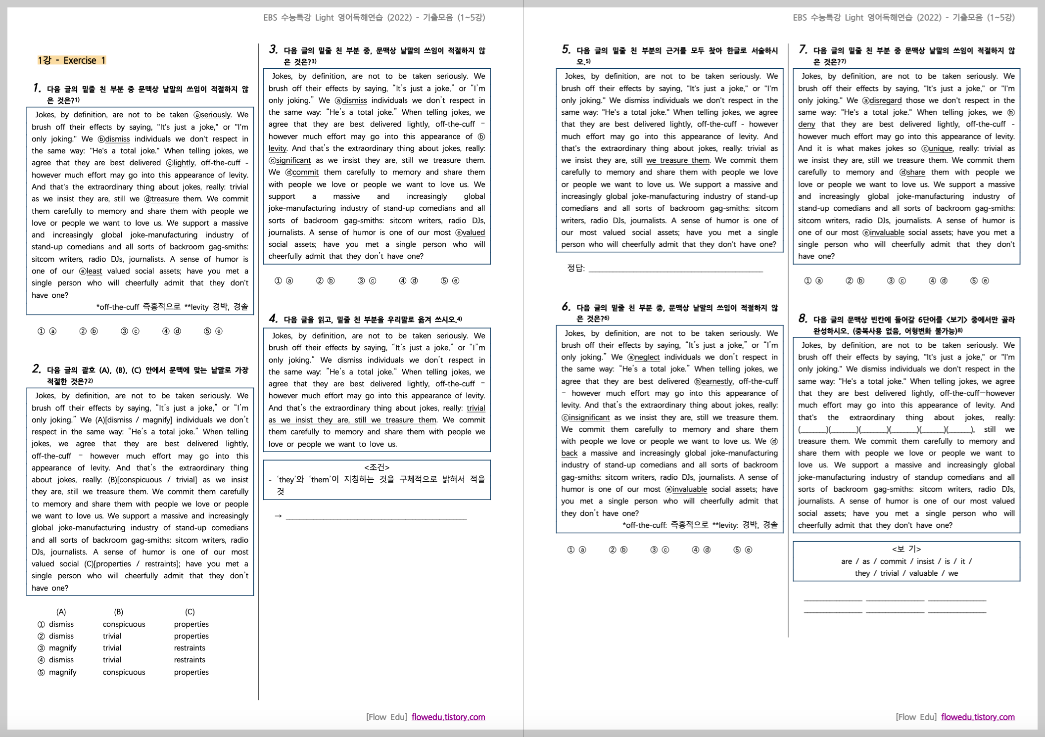 오늘은 <EBS 수능특강 Light 영어독해연습 (2022)>의 기출문제들을 정리해서 올립니다.