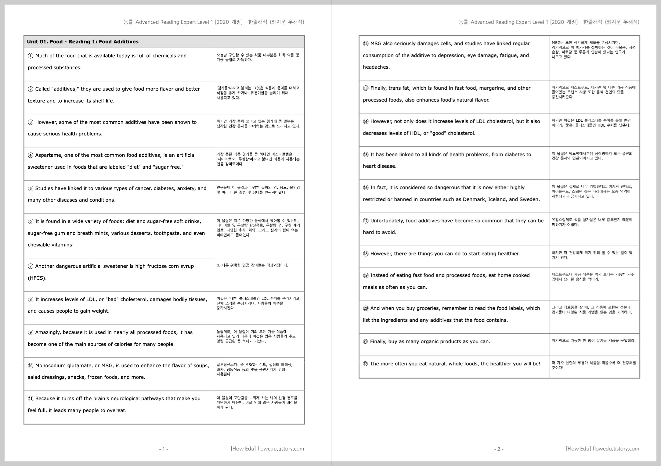 NE능률 Advanced Reading Expert Level 2 [2020 개정]의 한줄해석(좌지문 우해석) 자료입니다. 이번에는 일부 학교에서 부교재로 사용되는NE능률의 Reading Expert 시리즈에 대해한줄해석(좌지문 우해석) 작업