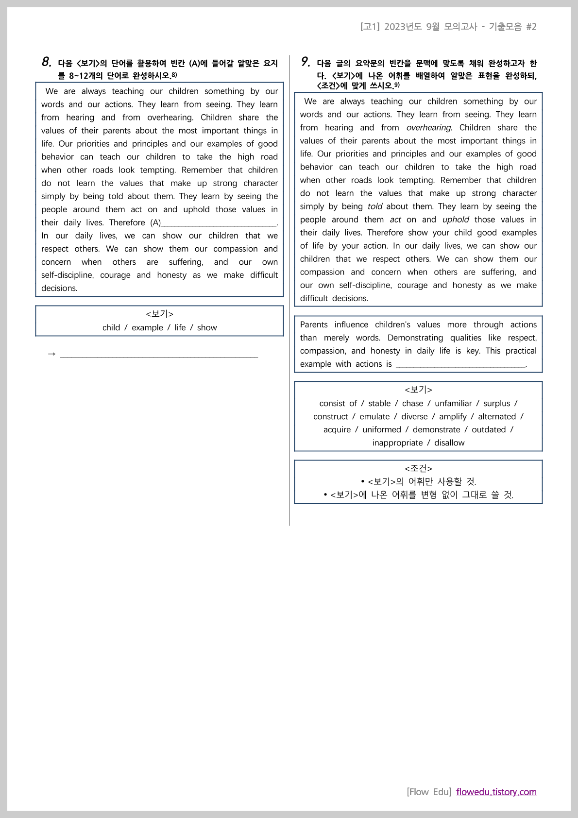 안녕하세요, Flow 영어연구소입니다. 오늘은 의 기출문제 모음 첫번째 자료를 올립니다.[고1] 2023년 9월 기출모음 #1 - 212문항과거 학교에서 출제됐던 기출 문제들을 문항별로 수집한 자료이며,문