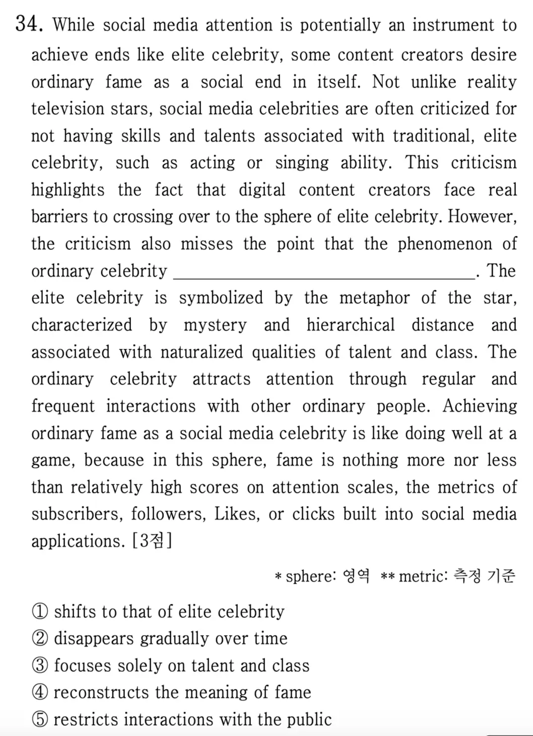 [고1] 2024년 09월 – 34번: 소셜미디어에서의 '일반적 유명인'과 전통적 유명인의 차이