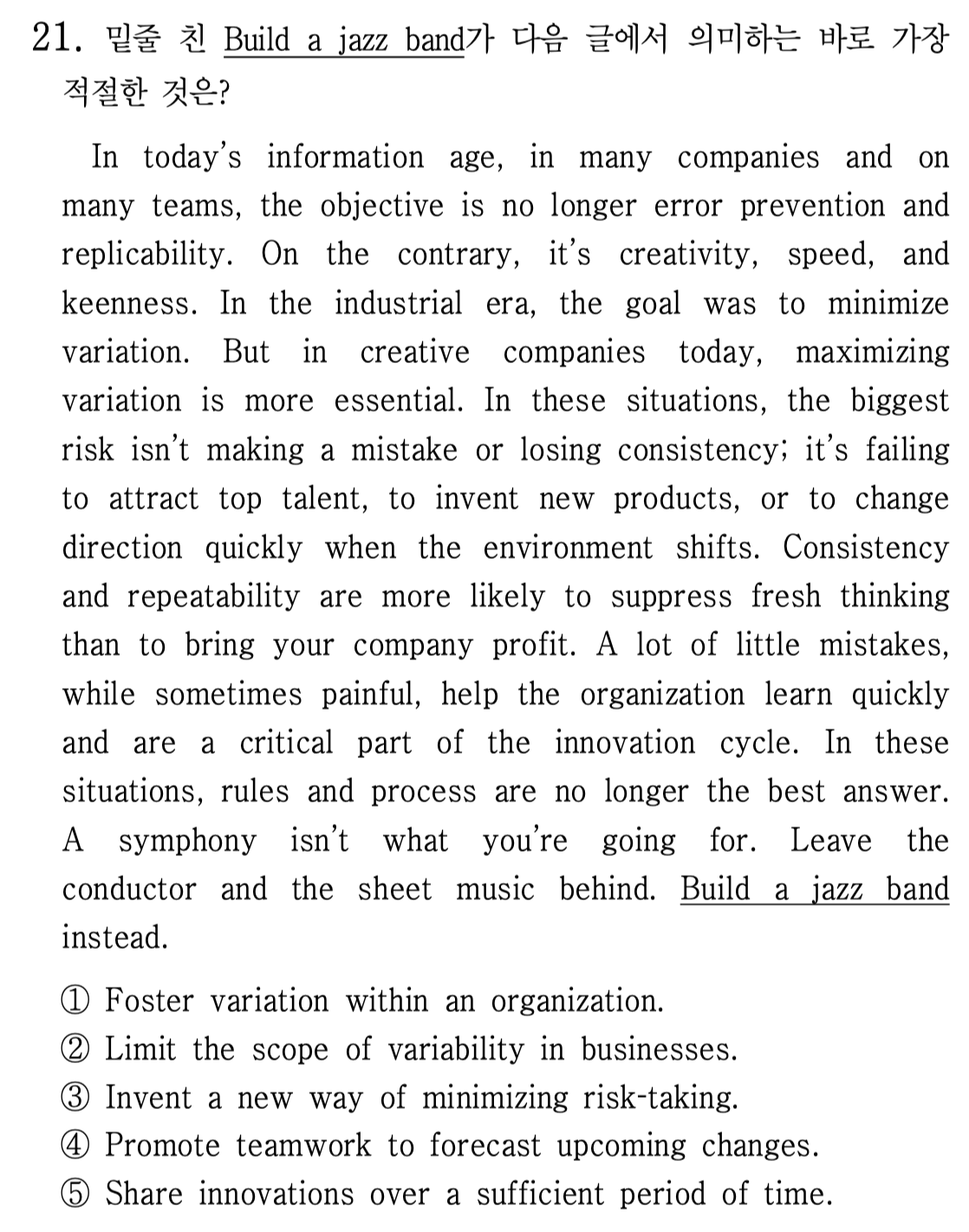 [고2] 2024년 09월 – 21번: 산업 시대에서 창의성과 속도가 더 중요한 현대 기업의 특성