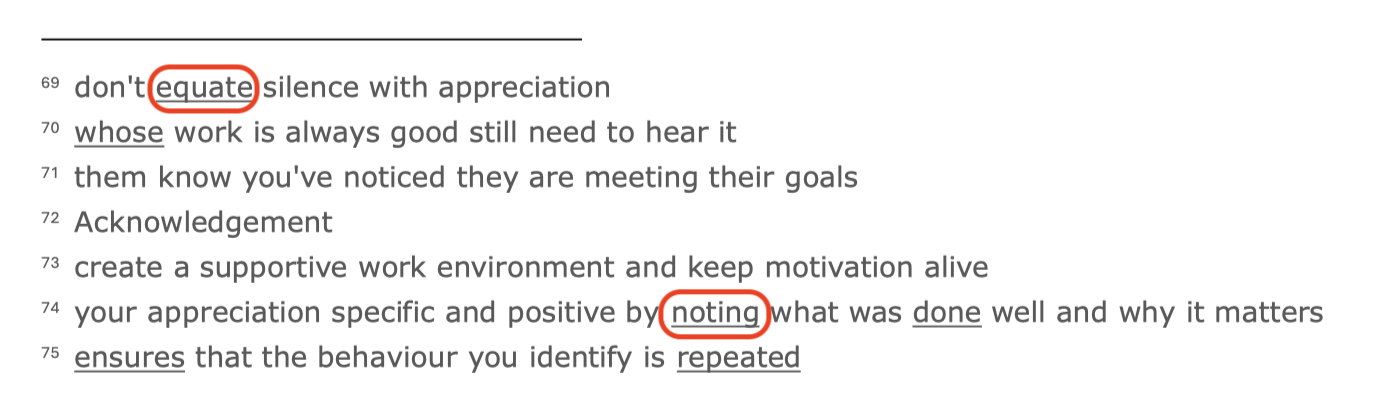 배열할 단어를 필요한 경우 묶어서 표시했고,