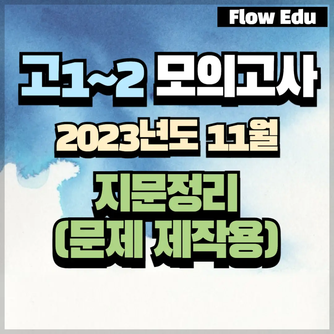 안녕하세요, Flow 영어연구소입니다. 오늘은 고1 2023년도 11월 모의고사(12월 시행)>의 기출문제 모음 1번째 자료를 올립니다.[고1] 2023년 11월 기출모음 #1 - 103문항 이번 모의고사는 2023년 12월 19일