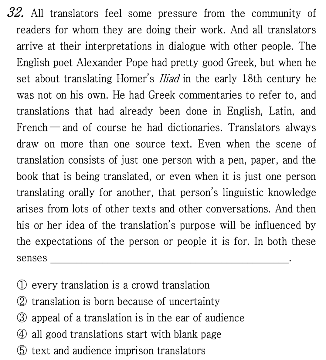 [고2] 2024년 10월 – 32번: 번역 작업이 다양한 출처와 독자의 기대에 의존하는 방식