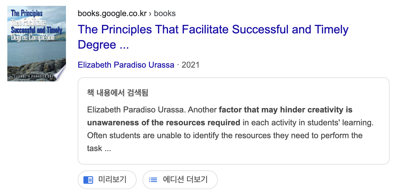 Another factor that may hinder creativity is unawareness of the resources required in each activity in students’ learning. Often students are unable to identify the resources they need to perform the task required of them. Different resources may be compulsory for specific HE learning tasks, and recognizing them may simplify the activity’s performance. For example, it may be that students desire to conduct some experiments in their projects. There must be a prior investigation of whether the students will have access to the laboratory, apparatuses, and chemicals required for the experiment. It means preparation is vital for the students to succeed, and it may be human and financial resources such as laboratory technicians, money to purchase chemicals, and apparatus for their learning where applicable. Even if some of the resources required for a task may not be available, identifying them in advance may help students’ creativity. It may even lead to changing the topic, finding alternative resources, and other means. |
