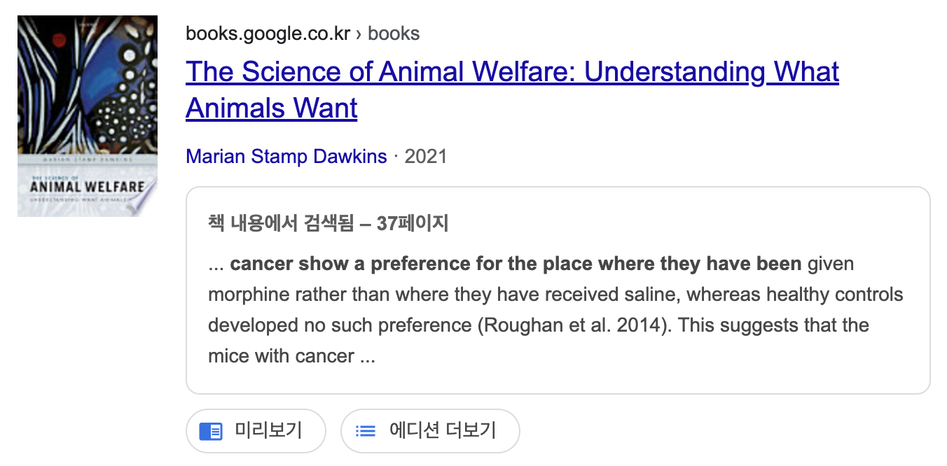 Conditioned Place Preference is a way of finding out what animals want. Researchers train them to associate one place with an experience such as food or a loud noise and another place with something completely different, usually where nothing happens. The two places are made obviously different to make it as easy as possible for the animal to associate each place with what happened to it there. The animal's preference for being in one place or another is measured both before and after its experiences in the two places. If there is a shift in where the animal chooses to spend its time for the reward, this suggests that it liked the experience and is trying to repeat it. Conversely, if it now avoids the place the stimulus appeared and starts to prefer the place it did not experience it, then this suggests that it found the stimulus unpleasant. For example, mice with cancer show a preference for the place where they have been given morphine, a drug used to relieve pain, rather than where they have received saline whereas healthy mice developed no such preference. This suggests that the mice with cancer wanted the morphine.