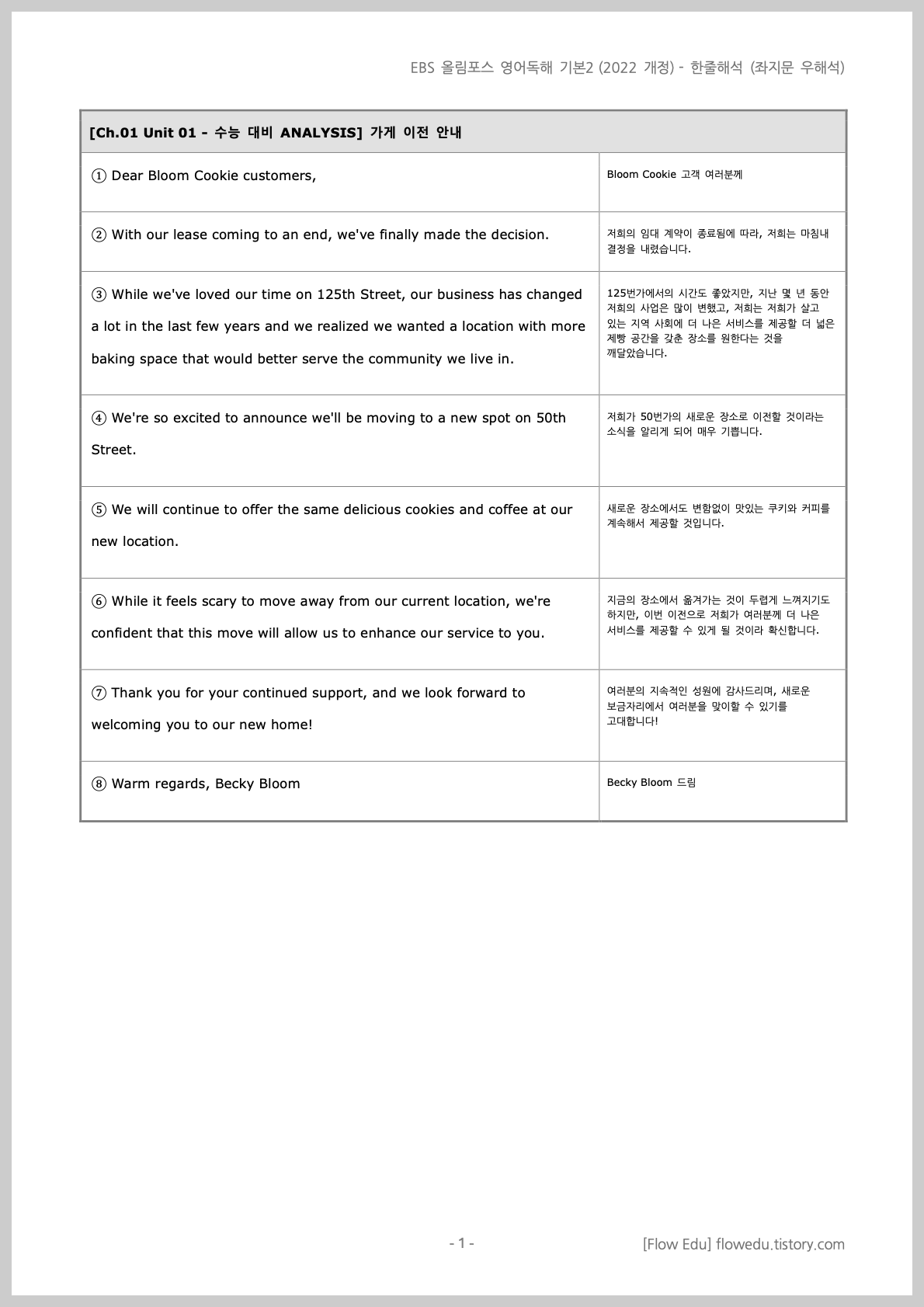 | [Ch.01 Unit 01 - 수능 대비 ANALYSIS] 가게 이전 안내 | |