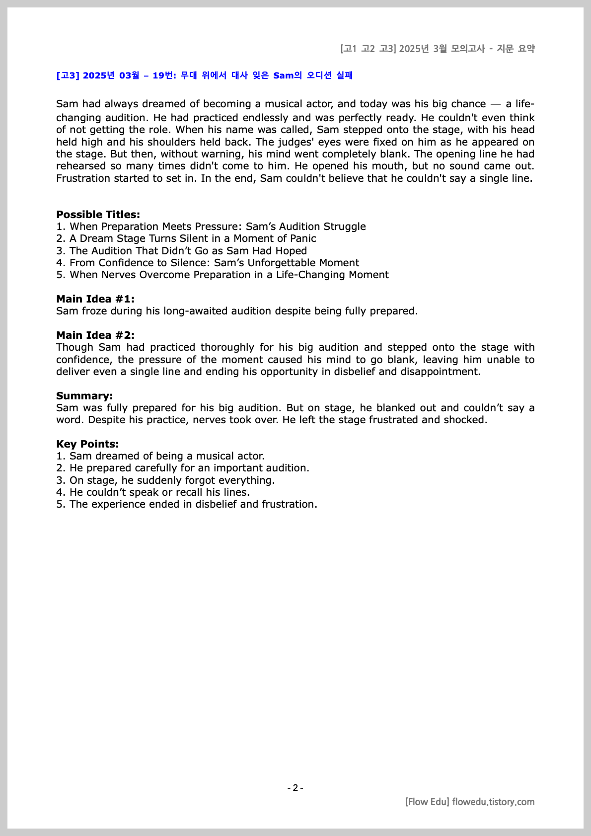 오늘은 <2025년도 3월 고3 영어 모의고사>의 지문 요약 자료 올립니다.
