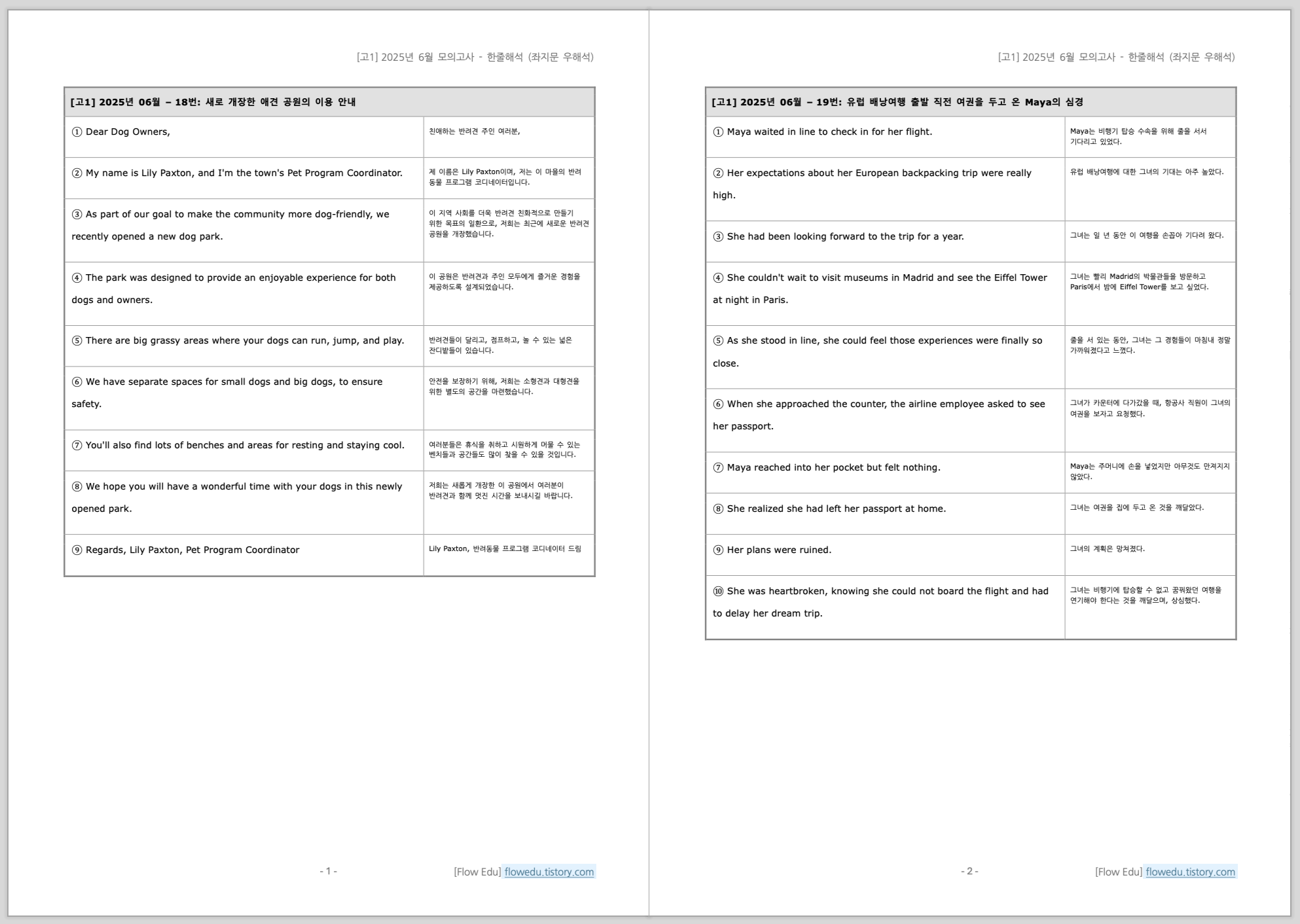 안녕하세요, Flow 영어연구소입니다. 2025년도 6월 고2 영어 모의고사>의 한줄해석 자료 올립니다.설명문/실용문을 포함 모든 지문을 대상으로 작업했습니다. 자료는 PDF와 Word 파일 모두 올립니다.