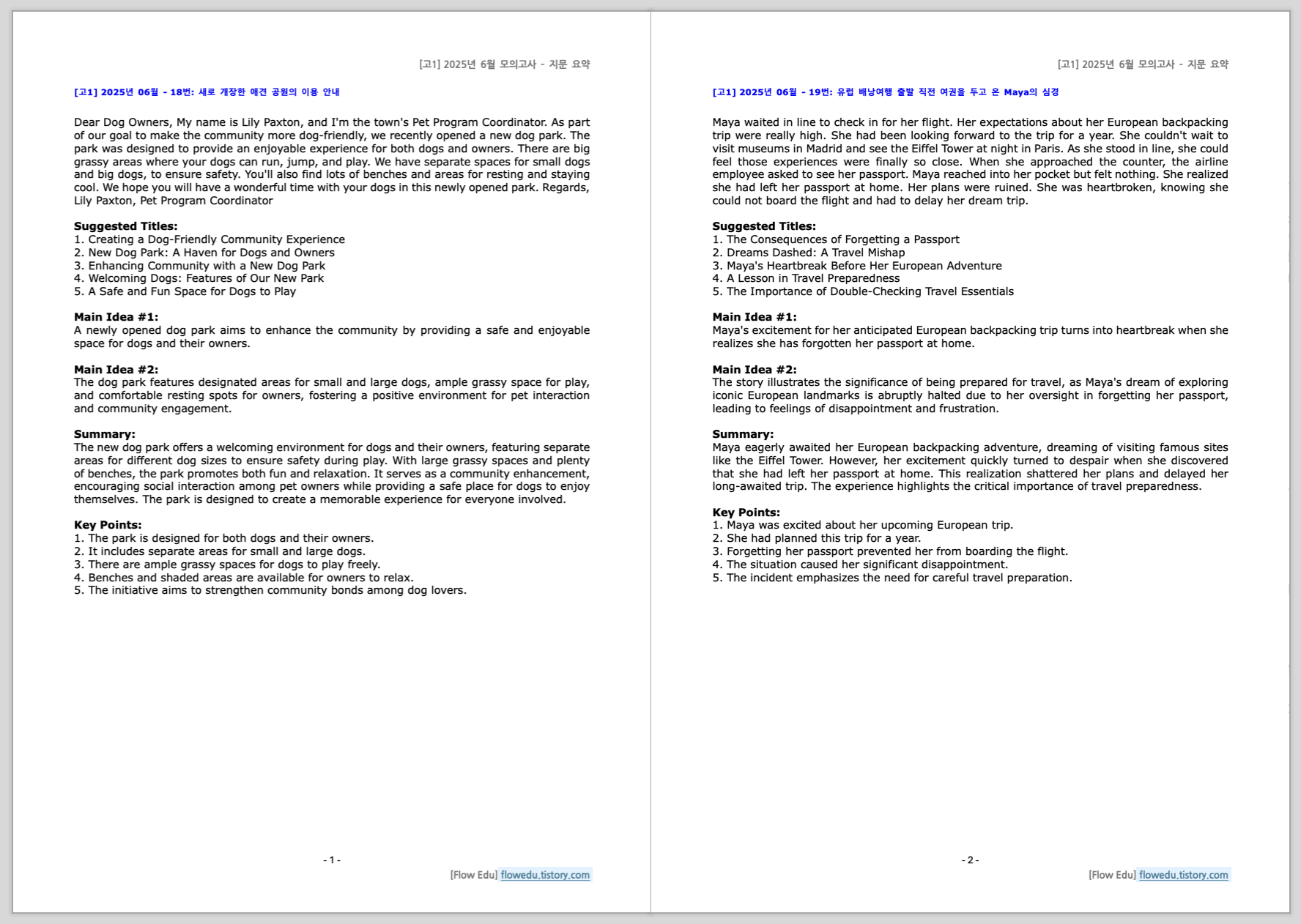 안녕하세요, Flow 영어연구소입니다. 오늘은 2025년도 6월 고3 영어 모의고사>의 한줄해석(좌지문 우해석) 자료 올립니다.설명문/실용문 포함 전지문 작업했습니다. 자료는 PDF와 Word 파일 모두 올립