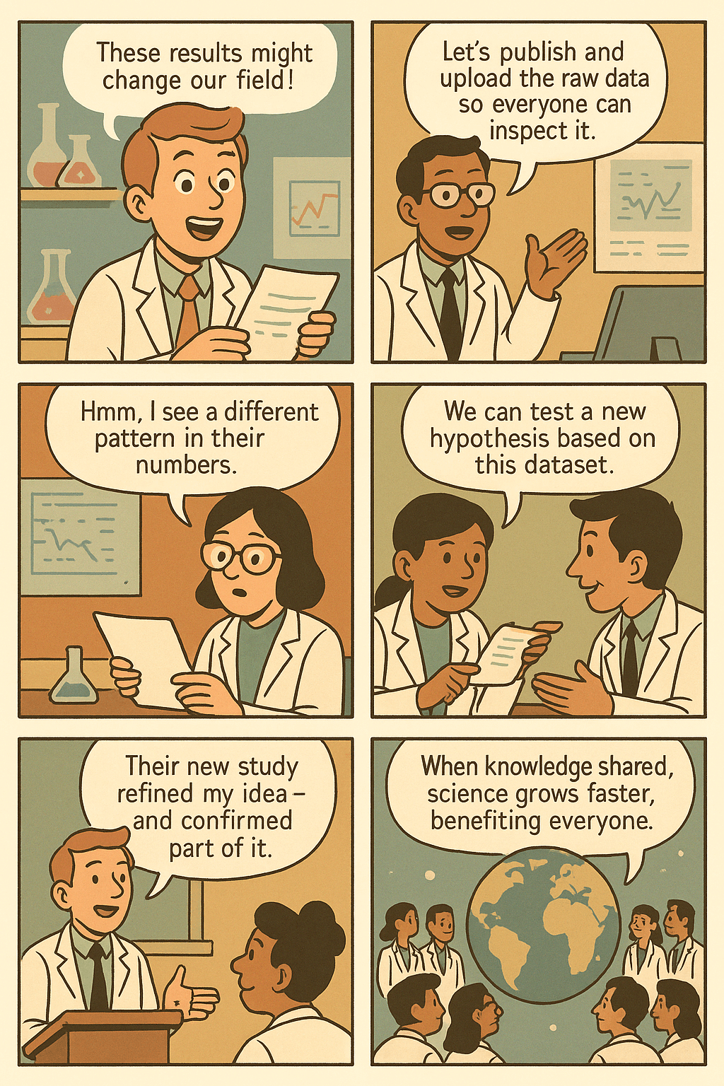 | 6 | More important, though, it makes it possible for other scientists to use that data to construct new hypotheses and perform new experiments. | More important, though, it makes it possible for other scientists to use that data to construct new hypotheses and perform new experiments. |