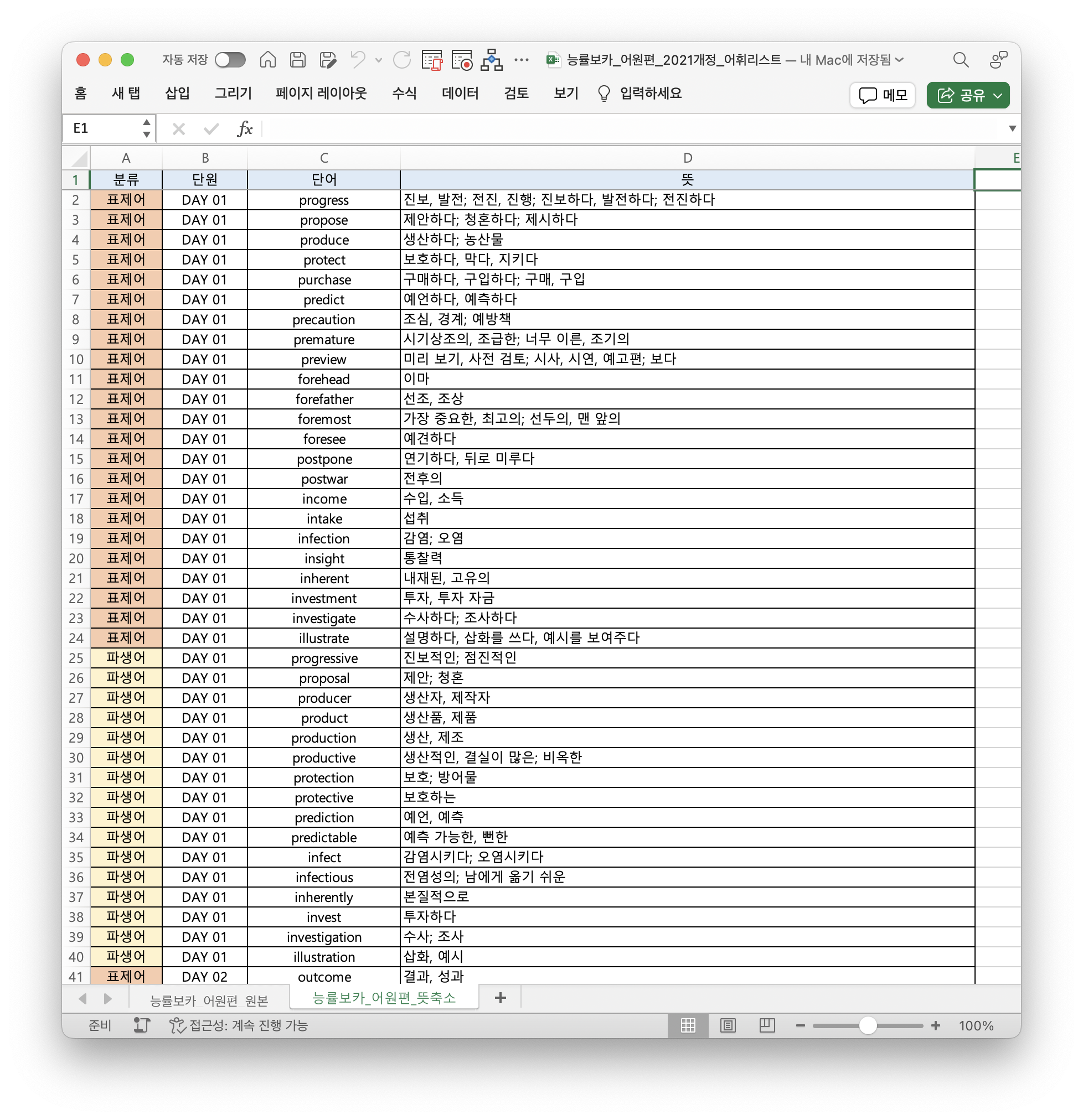 | [엑셀] 능률 특급 수능·EBS 기출 VOCA [2021개정] 어휘리스트 (1) | 2024.03.14 |