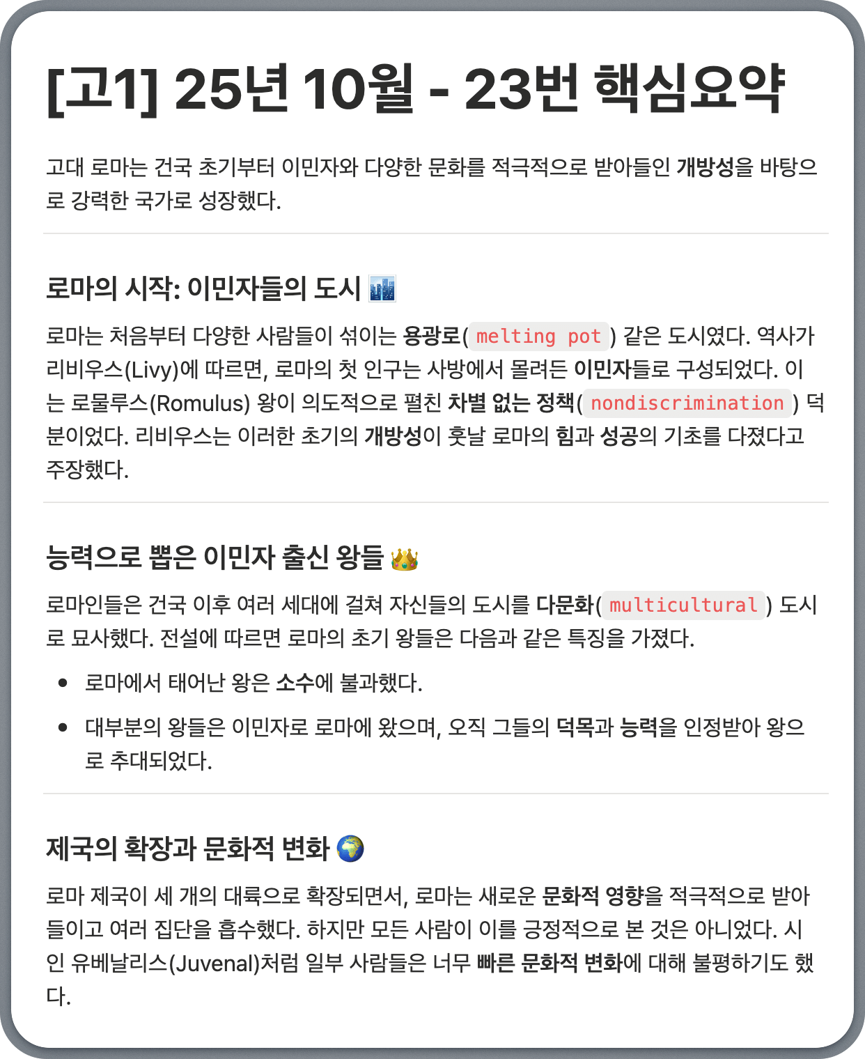 [고1] 25년 10월 - 23번: 이민자에 대한 개방성이 가져온 Rome의 성장과 성공