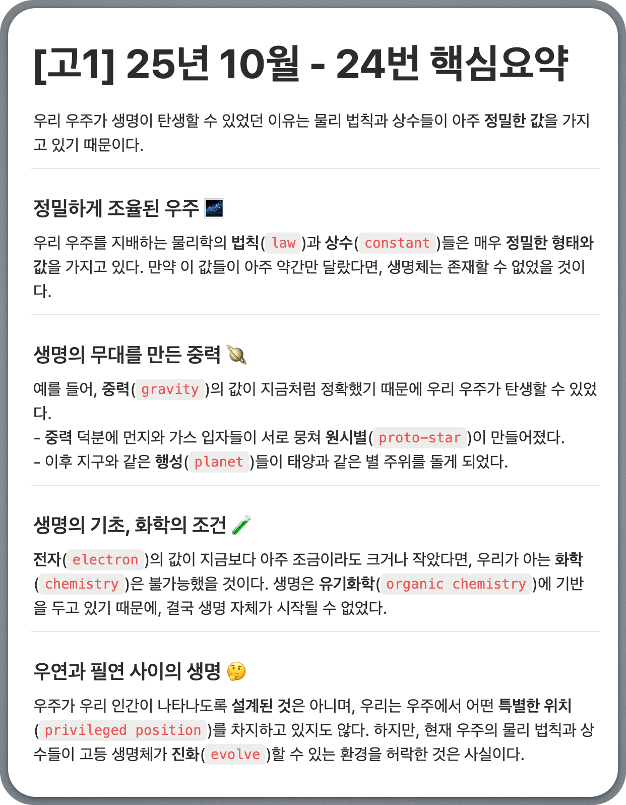 [고1] 25년 10월 - 24번: 생명 진화를 가능하게 한 우주의 정밀한 물리 법칙