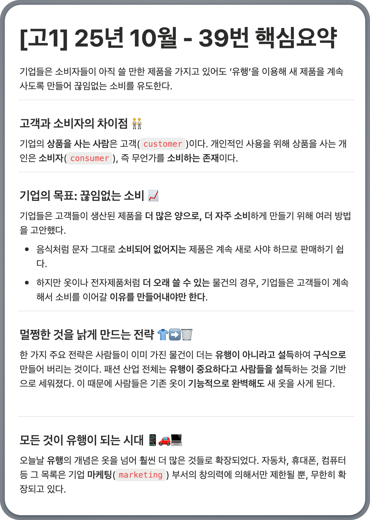 [고1] 25년 10월 - 39번: 소비 촉진을 위해 인위적으로 유행을 만드는 기업의 전략