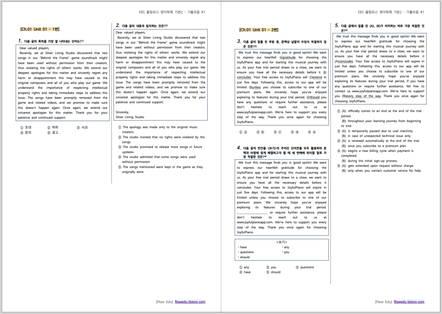 1) 빈칸이나 순서 등의 문제에 중복이 있을 수 있습니다. (학교마다 비슷한 문제가 출제될 수 있음)
