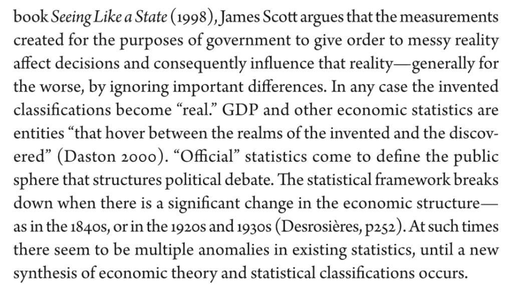| 6 | Desrosieres writes: "It is difficult to think simultaneously that the objects being measured really do exist and that this is only a convention". | Desrosières writes: “It is difficult to think simultaneously that the objects being measured really do exist and that this is only a convention”. |