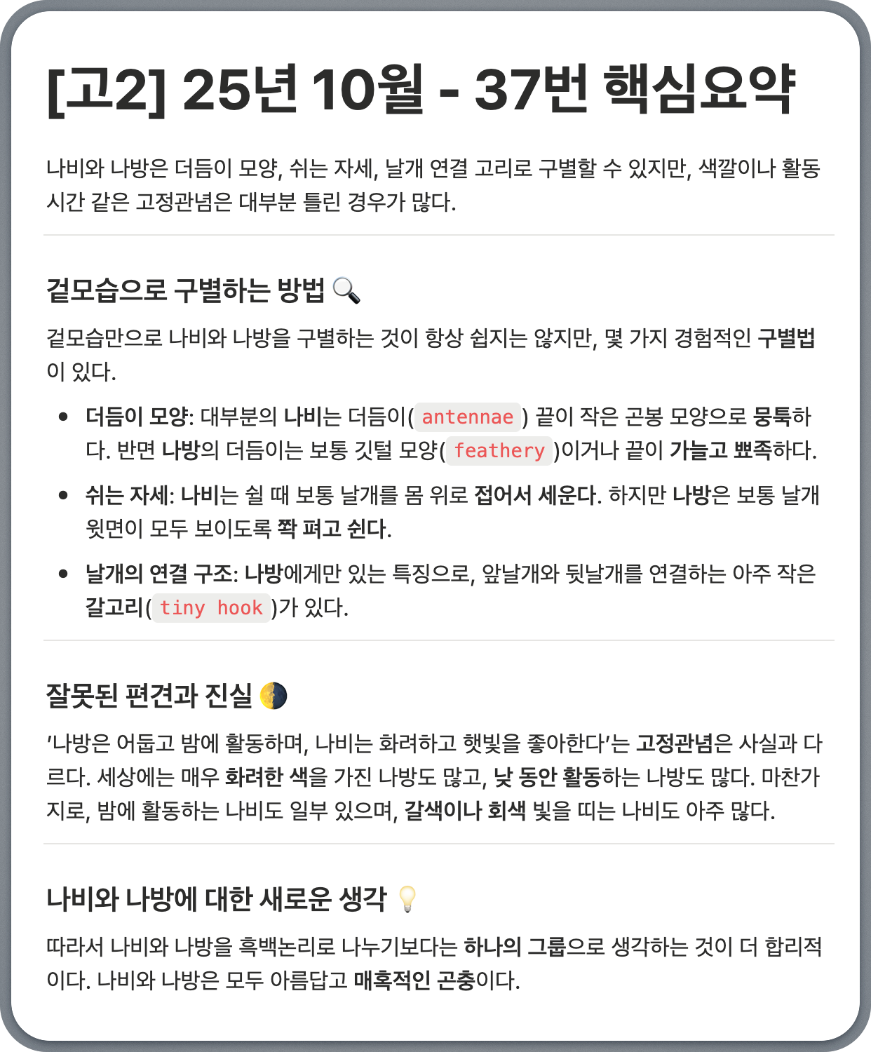 [고2] 25년 10월 - 37번: 나비와 나방을 구별하는 일반적 방법과 그 한계