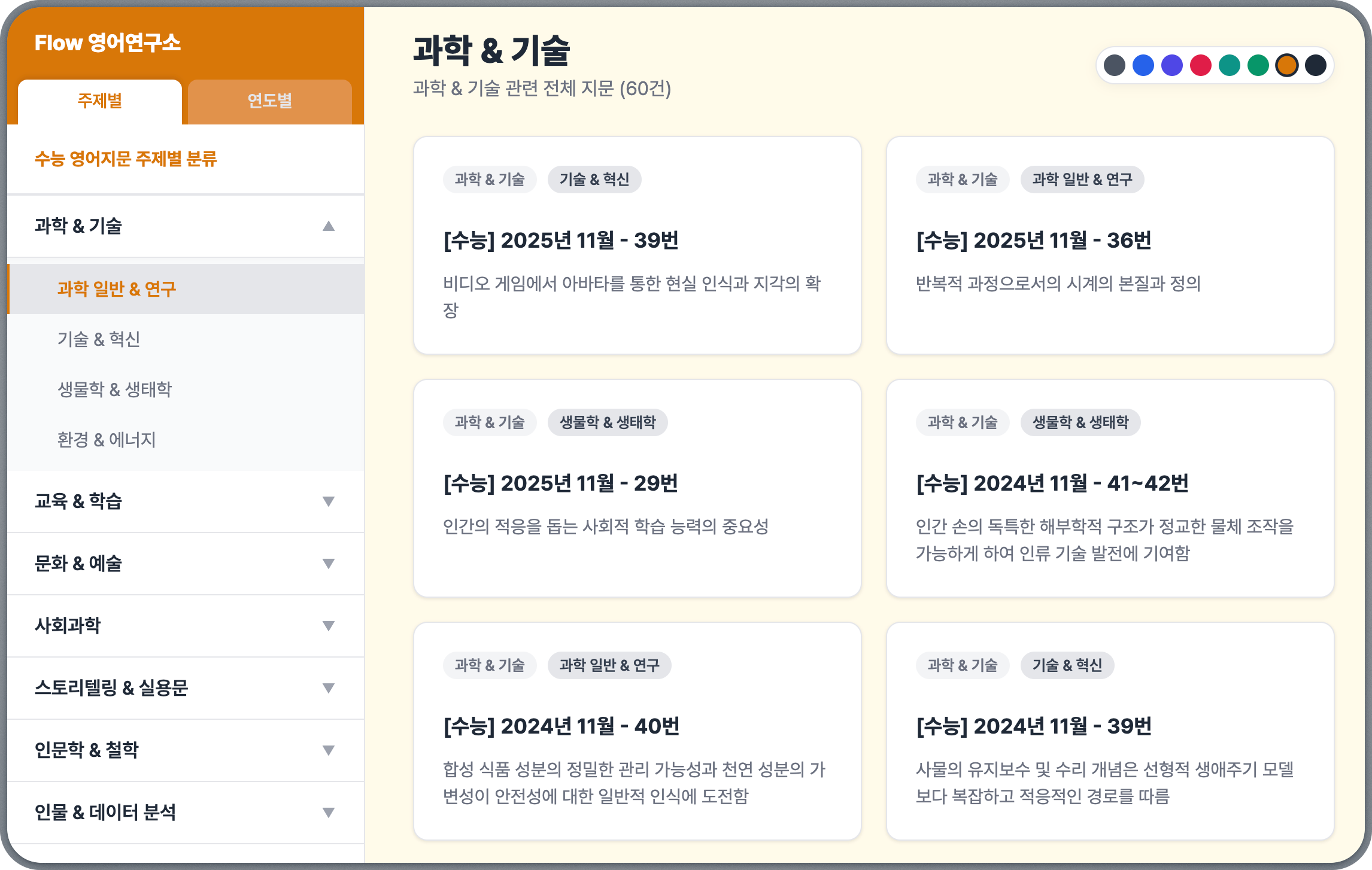 모의고사나 수능 지문을 주제별로 분류해서 볼 수는 없을까?