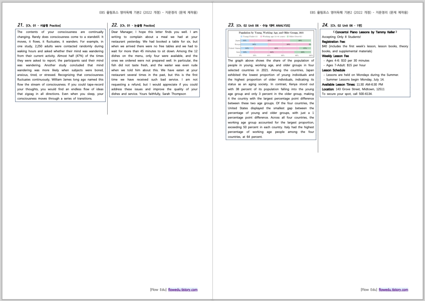 [EBS] 올림포스 영어독해 기본2 (2022 개정) - 지문정리 (문제 제작용)