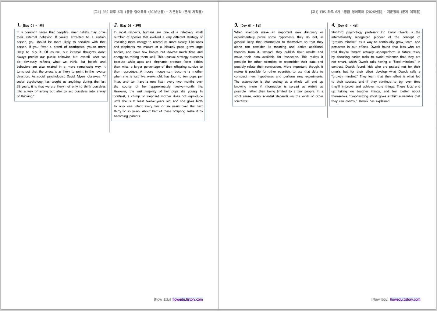 [고1] EBS 하루 6개 1등급 영어독해 (2026년용) - 지문정리 (문제 제작용)