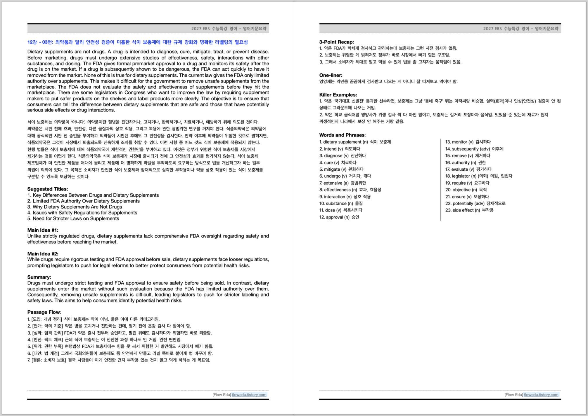| [1~7강까지 Updated] [EBS] 2027 수능특강 영어 1~7강 - 한줄해석 / 한줄해석(좌지문 우해석) / 영어지문요약 (7) | 2026.01.27 |