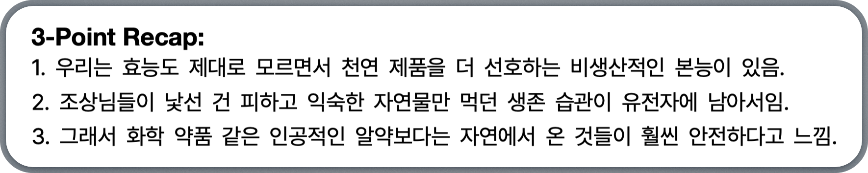 3줄요약(3-Point Recap), 1줄요약(One-liner), 예시(Killer Examples) 등을 추가했습니다.