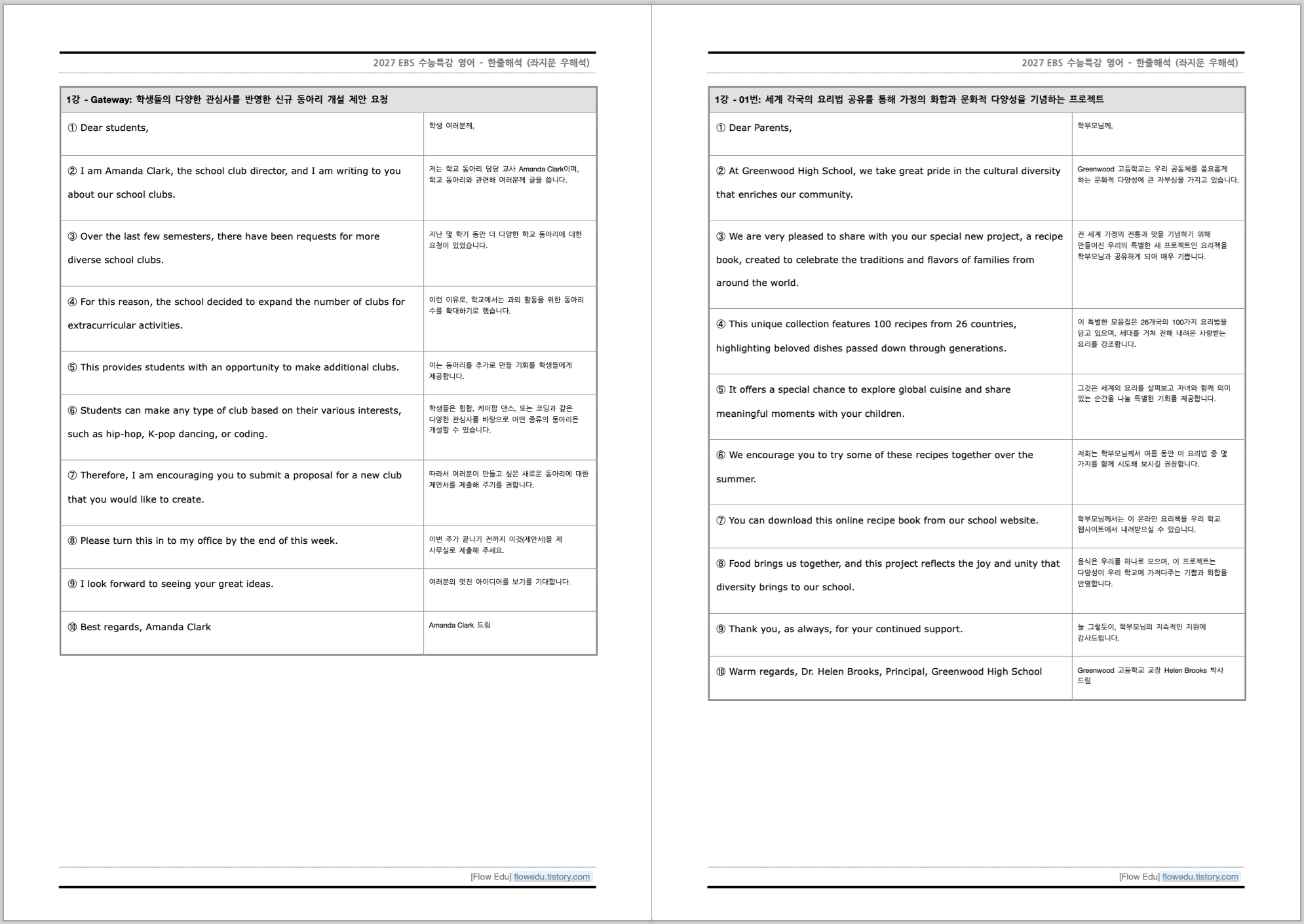 2027 EBS 수능특강 영어 - 지문 정리 (문제 제작용 한글 파일 PDF)